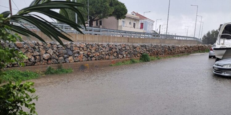Τη στιγμή της μεγάλης πλημμύρας το πρωί της Πέμπτης στον Περιφερειακό στο Βαρβάσι, κατέγραψε με την κάμερα του ο Δ. Γιαμάς.