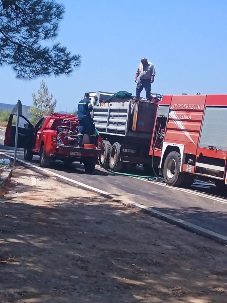 Σε επιφυλακή στην Αμανή κλιμάκια της Πυροσβεστικής και της Περιφερειακής ενότητας Χιου για τυχόν αναζωπυρώσεις.