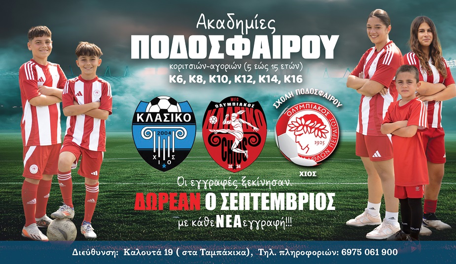 Ξεκίνησαν οι εγγραφές στις ακαδημίες του Ολυμπιακού/Κλασικού Χίου!!!