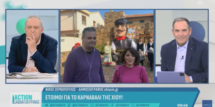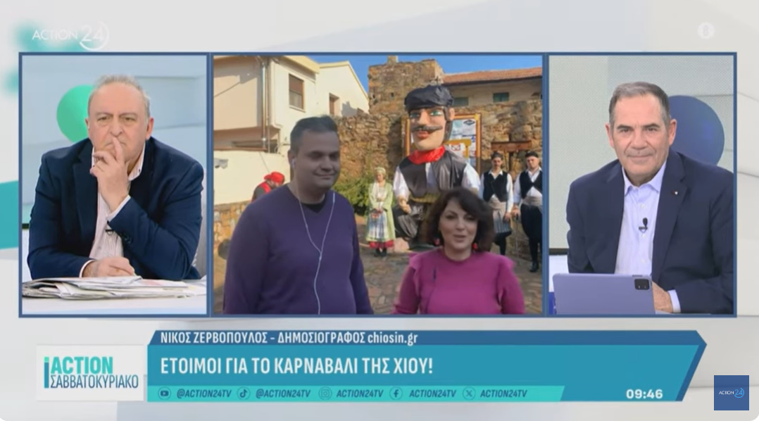 O Δημήτρης Καμπουράκης και ο Βαγγέλης Γιακουμής με την εκπομπή τους Action Σαββατοκύριακο στο Action24 ταξίδεψαν ως τα Θυμιανά Χίου και παρουσίασαν το Ταλίμι. Εκεί ο δημοσιογράφος Νίκος Ζερβόπουλος και το μέλος του ΜΕΟΘ Βασιλεία Βερβεράκη αναφέρθηκαν στο έθιμο που κρατά από τον Μεσαίωνα ενώ αποκάλυψαν τα άρματα της αυριανής Μόστρας. Ακολούθως ο χορός ταλίμι, ο παραδοσιακός αποκριάτικος χορός κάθε Τυρινή ανάμεσα σε πειρατές και βρακάδες έδωσε ξεχωριστό τόνο.