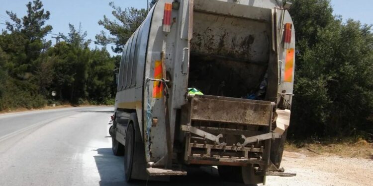 οχήματα καθαριότητας που κυκλοφορούν στους δρόμους του νησιού στην