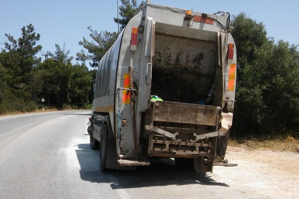 οχήματα καθαριότητας που κυκλοφορούν στους δρόμους του νησιού στην