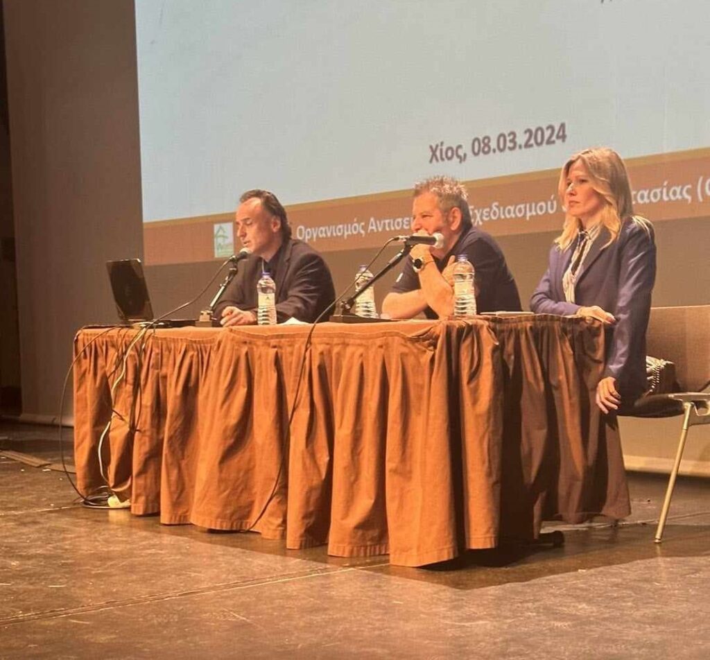 Κατά τη διάρκεια της ημερίδας αναλύθηκαν θέματα πρόληψης διαχείρισης και αντιμετώπισης φυσικών καταστροφών , ο γενικός δ/ντης του ΟΑΣΠ(ΟργανισμόςΑντισεισμικού Σχεδιασμού & Προστασίας Δρ Βασίλειος Μώκος παρουσίασε όλε στις νέες δράσεις του ΟΑΣΠ για την αντισεισμική θωράκιση της χώρας  ενώ η κα Κούρου αναπληρώτρια προϊσταμένη δ/νσης κοινωνικής αντισεισμικήςάμυνας μίλησε για τα μέτρα πρόληψης και ετοιμότητας για τη διαχείριση του σεισμικού κινδύνου.