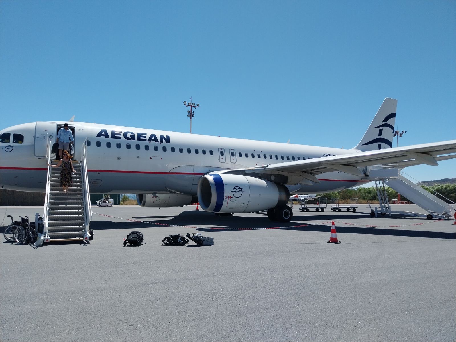 Λόγω της αυξανόμενης τουριστικής κίνησης στο νησί μας και της έλλειψης θέσεων αλλά και καμπινών στο καράβι ηΑΕGEAN/OLYMPIC AIR, δρομολόγησε από σήμερα μεγαλύτερο αεροπλάνο AirbusA320 144 θέσεων.