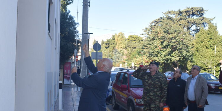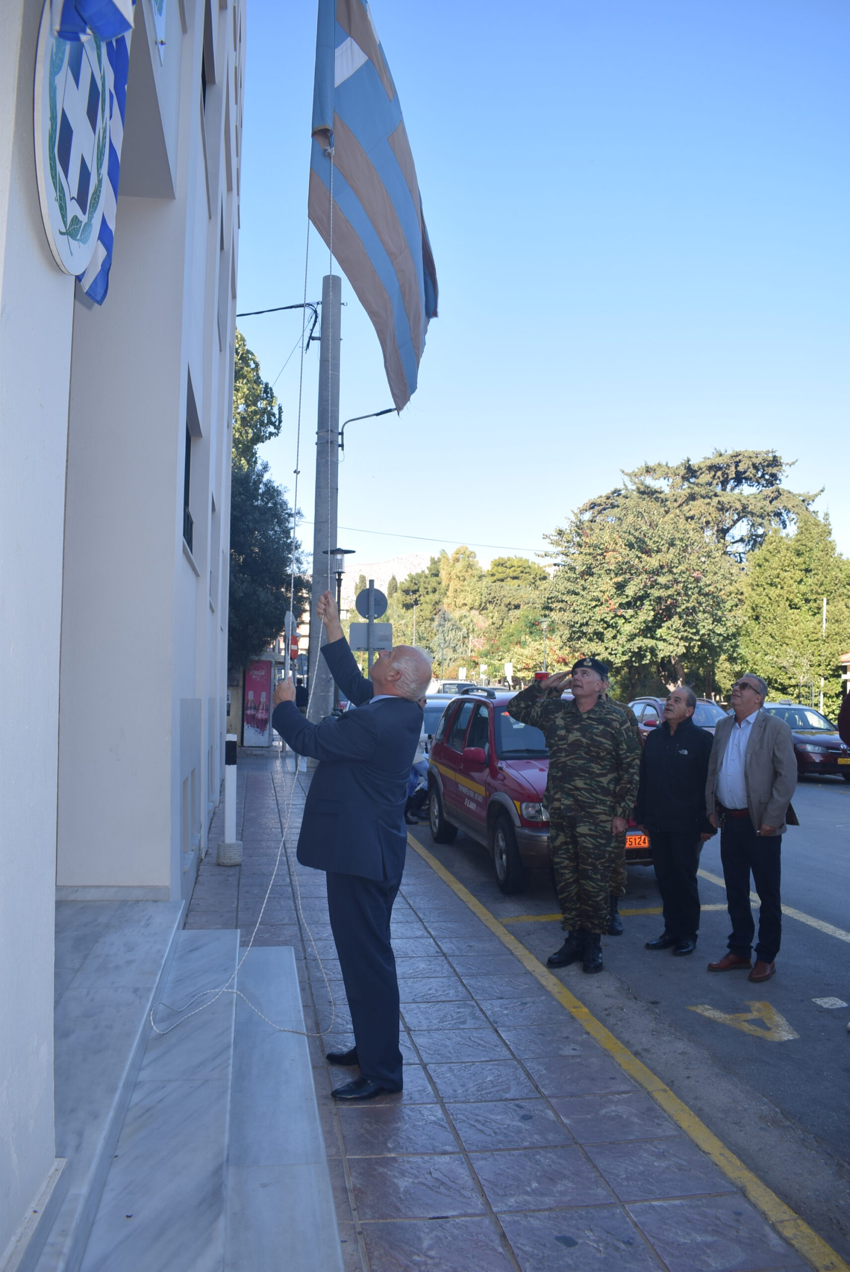 Ανάρτηση στο κτίριο της ΠΕ Χίου ομοιώματος της 1ης Ελληνικής σημαίας που υψώθηκε στη Χίο την ημέρα της Απελευθέρωσης.