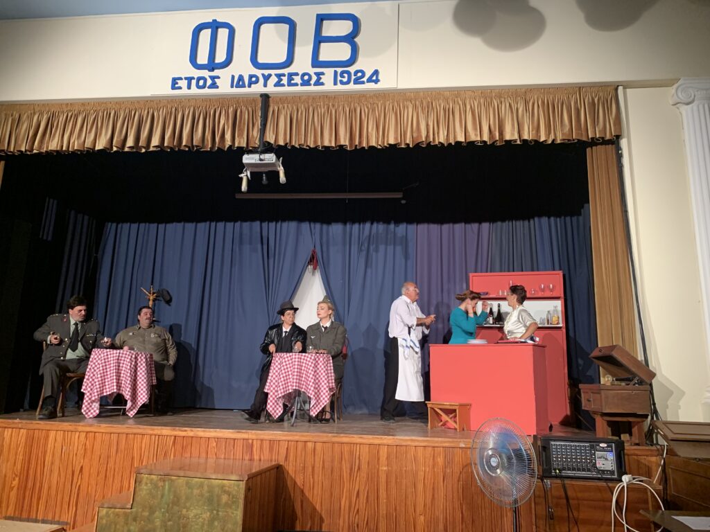Παρουσιαστηκε την Παρασκευη καο το Σαββατο 4-5 Ιουλιου από τη θεατρική ομαδα του ΦΟΒ «Αυλαία» η παράσταση ’Allo ’Allo!, μια ξεκαρδιστική κωμωδία των Τζέρεμι Λόιντ και Ντέιβιντ Κροφτ, σε σκηνοθεσία Νίτσας Κλούβα η οποία σατιρίζει πρόσωπα και καταστάσεις που διαδραματίζονται σε ένα «καφέ» της Γαλλίας, την περίοδο της Γερμανικής Κατοχής. Ετερόκλητοι άνθρωποι – Γερμανοί και Ιταλοί στρατιωτικοί, Βρετανοί κατάσκοποι, Γάλλοι αντιστασιακοί και ερωμένες – μπαινοβγαίνουν στο καφέ χωρίς το παραμικρό πρόβλημα. Όλοι ξέρουν τι συμβαίνει σε αυτό το ασυνήθιστο «καφέ», όλοι όμως κάνουν τα στραβά μάτια, γιατί όλοι έχουν κάτι να κερδίσουν… και η ζωή κυλάει ήρεμα… Μέχρι που…