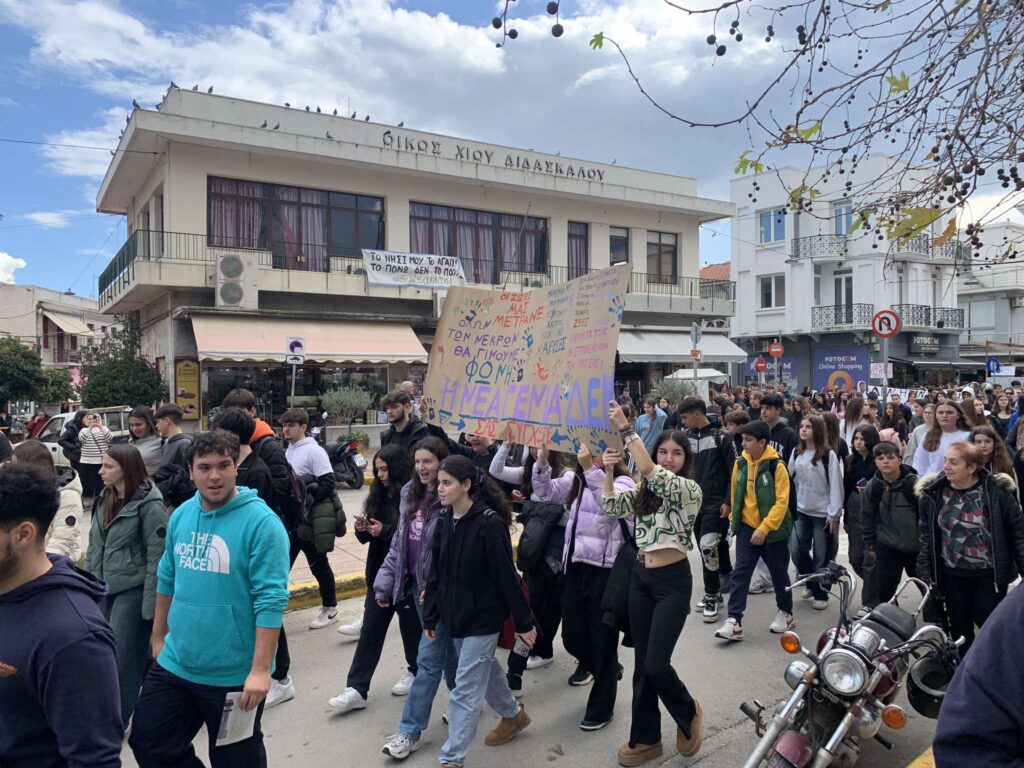 ΧΙΟΣ: Ηχηρή συγκέντρωση μαθητών- φοιτητών για εξόρυξη αντιμονίου & Τέμπη (vid)