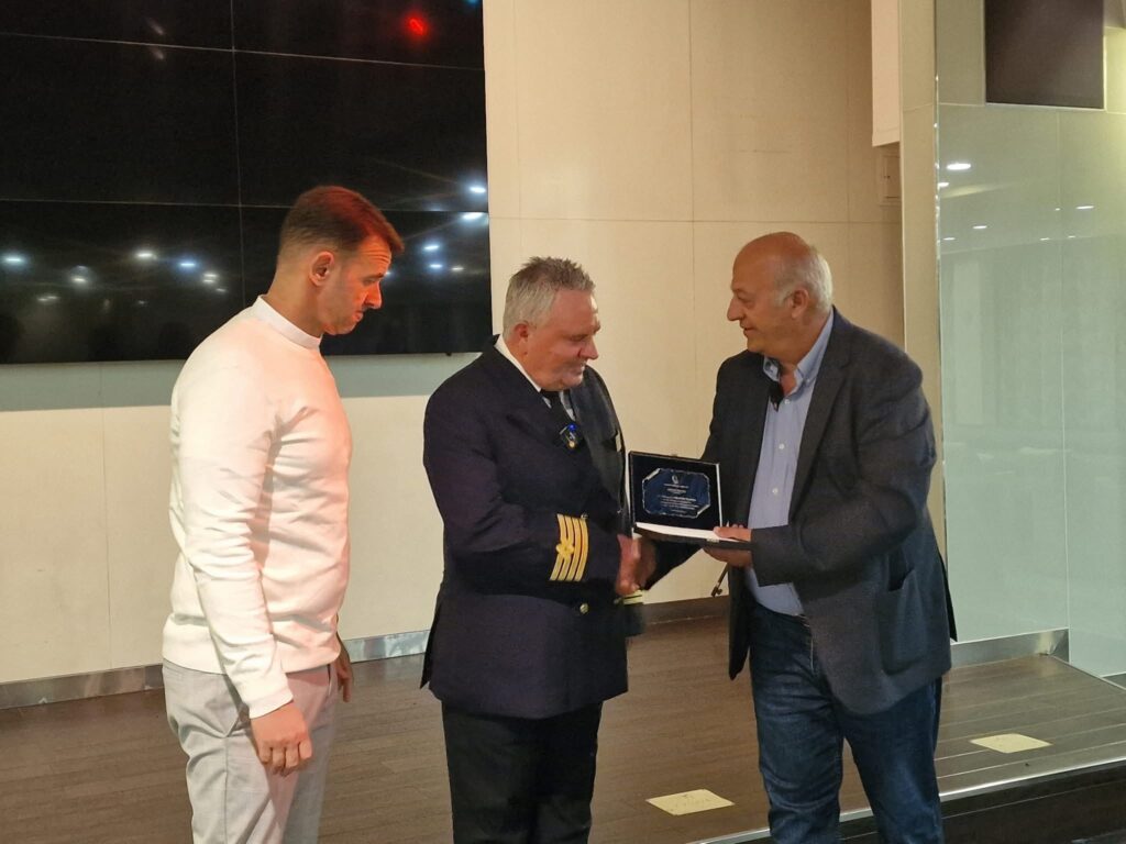 Σήμερα, κατά την άφιξή του “Νήσος Σάμος” στην Χίο, ο Δήμαρχος Χίου κ. Γιάννης Μαλαφής και ο Πρόεδρος του Λιμενικού Ταμείου Χίου κ. Παντελής Λεγάτος μου έκαναν την τιμή να μου απονείμουν πλακέτα αναφορικά με την συνεισφορά μου στην ολοκλήρωση του Γενικού Στρατηγικού Σχεδίου Ανάπτυξης του Λιμένα Χίου (MASTER PLAN).