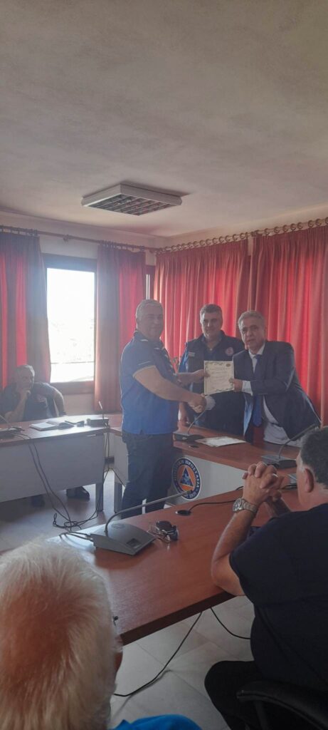 Ακολούθησε τιμητική εκδήλωση, στην οποία ο Δήμαρχος Χίου και ο Αντιδήμαρχος Πολιτικής Προστασίας απένειμαν επαίνους στις εθελοντικές ομάδες για την αδιάλειπτη προσφορά και την αποτελεσματική τους συνεργασία με το Δήμο Χίου. Τέλος ο Αντιδήμαρχος Πολιτικής Προστασίας τίμησε τους συνεργάτες του για τη συμβολή τους στο έργο που έως σήμερα έχει παραχθεί.
