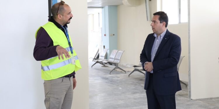 Κατά την αυτοψία του ο κ. Μηταράκης ενημερώθηκε από τον εργολάβο του έργου για τις εργασίες που πραγματοποιούνται στο κτήριο του Αεροδρομίου, και ειδικότερα στην προσωρινή αίθουσα των αναχωρήσεων, ενώ επέβλεψε και την πρόοδο του έργου στον εξωτερικό και περιβάλλοντα χώρο που αφορά στο έργο της επέκτασης του διαδρόμου. Η προσωρινή αίθουσα αναχωρήσεων εκτιμάται να παραδοθεί την επόμενη εβδομάδα, οπότε και θα ξεκινήσει η λειτουργία της με την παράλληλη μετακίνηση των επιβατών. Οι δύο προσωρινές αίθουσες, αφίξεων και αναχωρήσεων, θα λειτουργήσουν μέχρι και την ολοκλήρωση των εργασιών για την αναβάθμιση του κτηρίου του Αεροδρομίου.