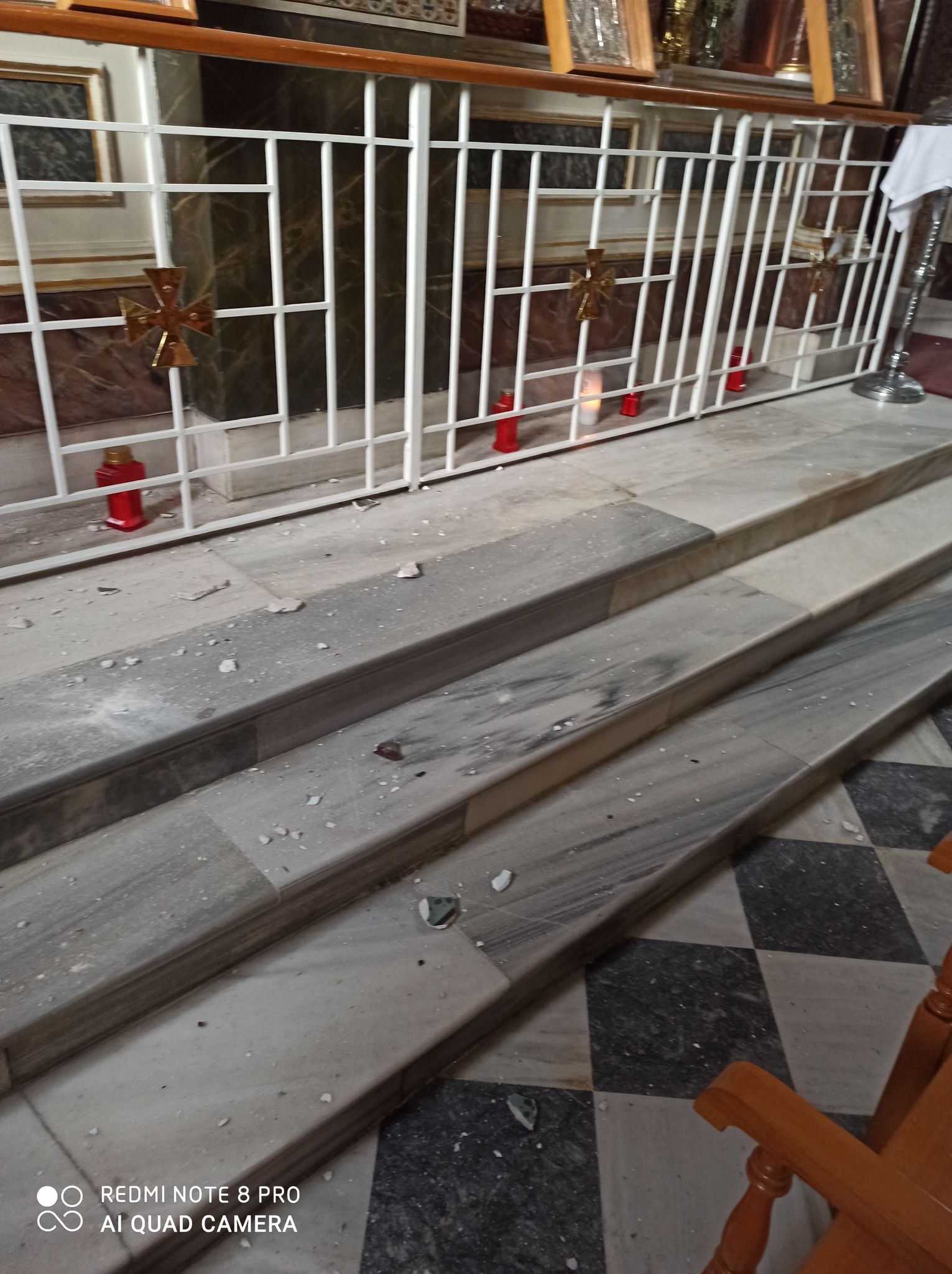 Ζημιές ρωγμές από το Ιερό, τον γυναικωνίτη μέχρι το καμπαναριό καταγράφηκαν στην Ευαγγελίστρια της πόλης της Χίου.