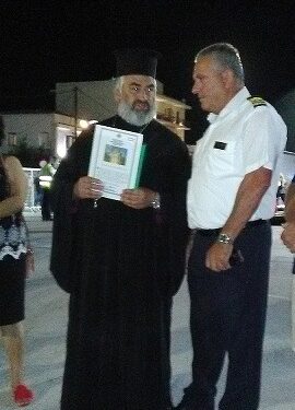 Ο π. Βασίλειος Φιλιππἀκης εφημέριος του Ναού του απέδωσε τιμητικό δίπλωμα, την εικόνα της Παναγίας και τους ευχήθηκε να έχουν καλά και γαλήνια ταξίδια.