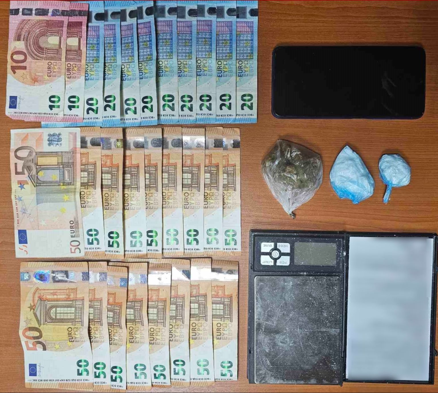 Επιπλέον κατασχέθηκαν, κινητό τηλέφωνο και νάιλον συσκευασία με ποσότητα κοκαΐνης, βάρους -6,1- γραμμαρίων, που είχε στην κατοχή του ο συλληφθείς.