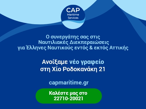 Η CAP maritime Services πραγματοποίησε τα εγκαίνια του γραφείου της στη Χίο. Πρόκειται για μία οικογενειακή επιχείρηση που ιδρύθηκε πριν 3 χρόνια στον Πειραιά από την οικογένεια του Αντώνη Πιτσιλού με όραμα να προσφέρει υπηρεσίες στους Έλληνες Ναυτικούς και με εμπειρία 30 ετών. Συνοδοιπόρος ο έμπειρος διευθύνων συμβουλος της Chartword Shipping, κ. Αντώνης Φαράκλας.