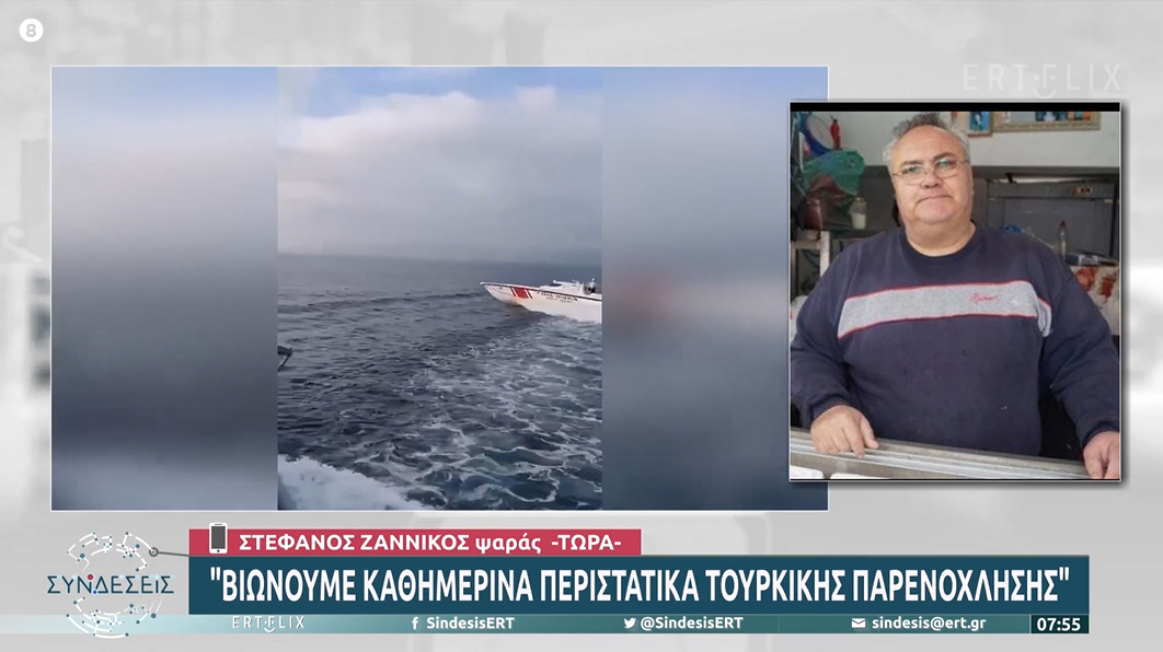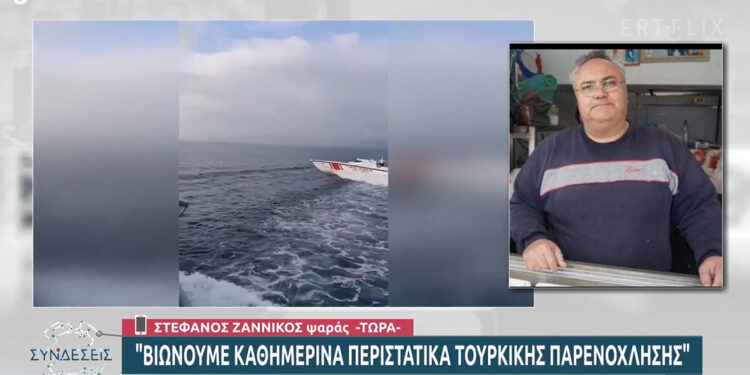 Αυτή η κατάσταση με τις παρενοχλήσεις υπάρχει εδώ και 25 χρόνια και είναι καθημερινό φαινόμενο. Δεν θα το πούμε γιατί είναι Casus Belli αλλά πρόκειται για εξόρυξη του αλιευτικού μας πλούτου. Είμαστε σε όλο το Β. Αιγαίο 20-30 ψαράδες και είναι 1200-1400.