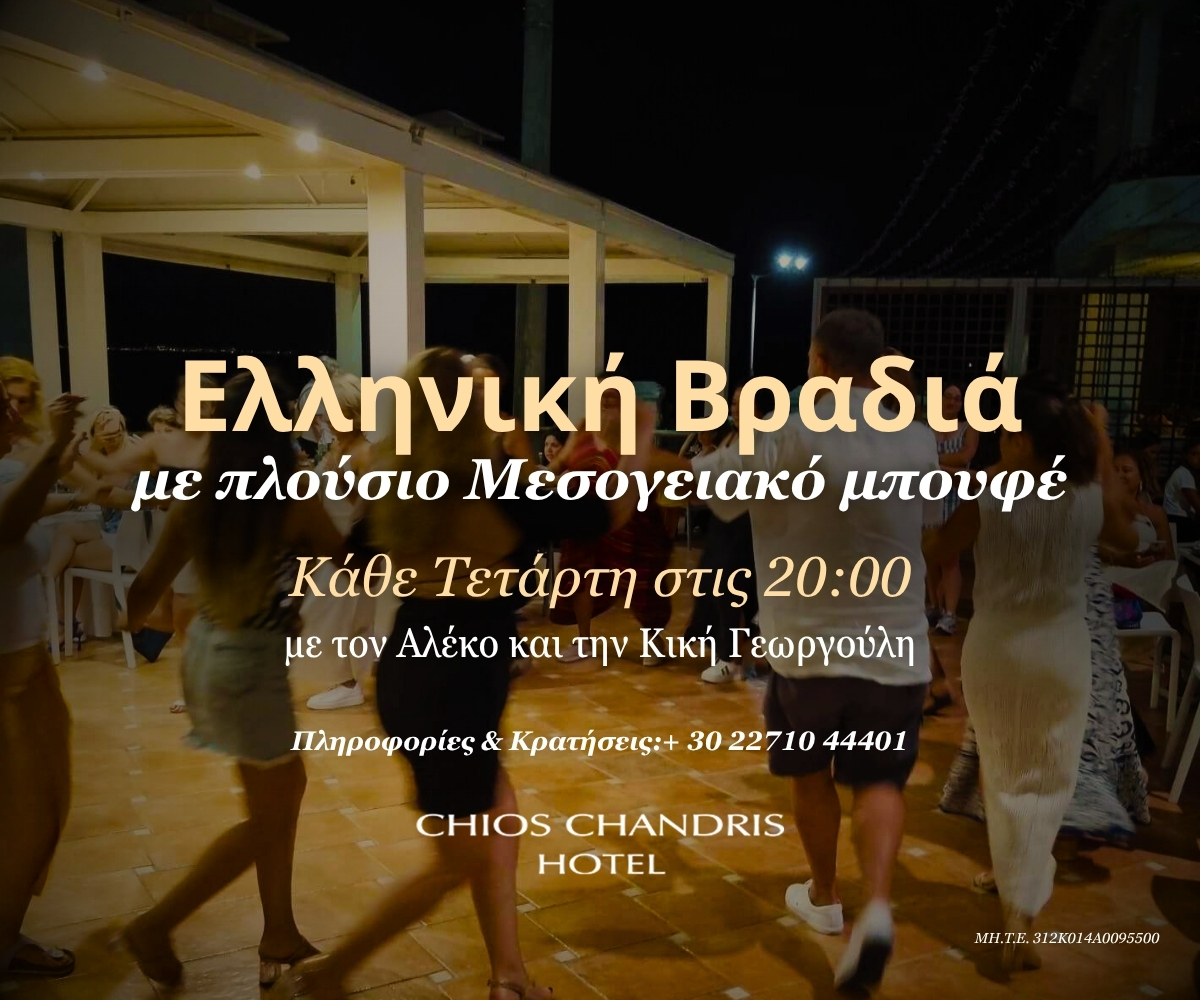 Το καλοκαίρι στη Χίο φέρνει μαζί του την καθιερωμένη Ελληνική Βραδιά στο Chios Chandris Hotel!