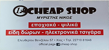 Οι γιορτινές μέρες πλησιάζουν και στο κατάστημα CHEAP SHOP στην οδό Βενιζέλου 57 έβαλε τα γιορτινά του. Το κατάστημα διαθέτει τεράστια ποικιλία από Χριστουγεννιάτικα είδη σε εκπληκτικές τιμές. Στο CHEAP SHOP μπορείτε να δείτε από κοντά όλα τα είδη, χριστουγεννιάτικα στολίδια 2023, χριστουγεννιάτικα δέντρα, χριστουγεννιάτικα λαμπάκια, παιxνίδια, ατζέντες,ημερολόγια και αμέτρητα είδη απο πολύ χαμηλές τιμές . Το ευχάριστο προσωπικό σας περιμένει να σας εξυπηρετήσουν προκειμένου να βρείτε αυτό που χρειάζεστε.Μην χάνετε χρόνο και αποκτήστε έγκαιρα και οικονομικά τα προϊόντα που επιθυμείτε!