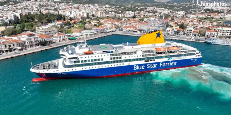 Το Blue Star Delos μπήκε στο λιμάνι της Χίου και με μία δεξιοτεχνική αριστερόστροφη μανούβρα και ένα γρήγορο ρεμέτζο 3 λεπτών έδεσε με ακρίβεια στο λιμάνι. Αυτό ήταν το τελευταίο ταξίδι του Blue Star Delos στην άγονη γραμμή του βορειανατολικού Αιγαίου όπου αντικατέστησε το Blue Star Myconos για 1,5 μήνα περίπου στην ετήσια ακινησία του. Ήταν η πρώτη φορά που δρομολογήθηκε το Blue Star Delos στη γραμμή του Βορειοανατολικού Αιγαίου.