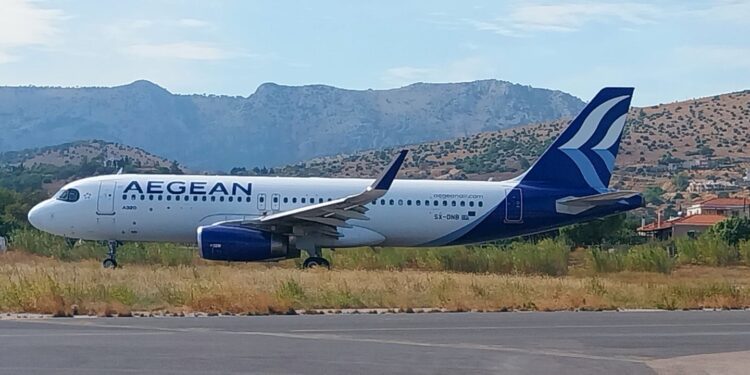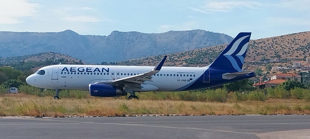 Μπορεί ο διάδρομος να είναι υπό κατασκευή όμως τα Airbus της Aegean έρχονται τέλη Σεπτεμβρίου. Η φωτογραφία την Κυριακή το μεσημέρι από την αναχώρηση του Airbus. Να σημειωθεί ότι ολοκλήρωσε τις πτήσεις του και το μοναδικό τσάρτερ για Πράγα που είχαμε φέτος από Χίο.