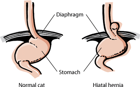 Τμήμα του στομάχου, αντί να βρίσκεται στην κοιλιακή κοιλότητα, περνάει μέσα στο θώρακα. Η πάθηση αυτή ονομάζεται διαφραγματοκήλη