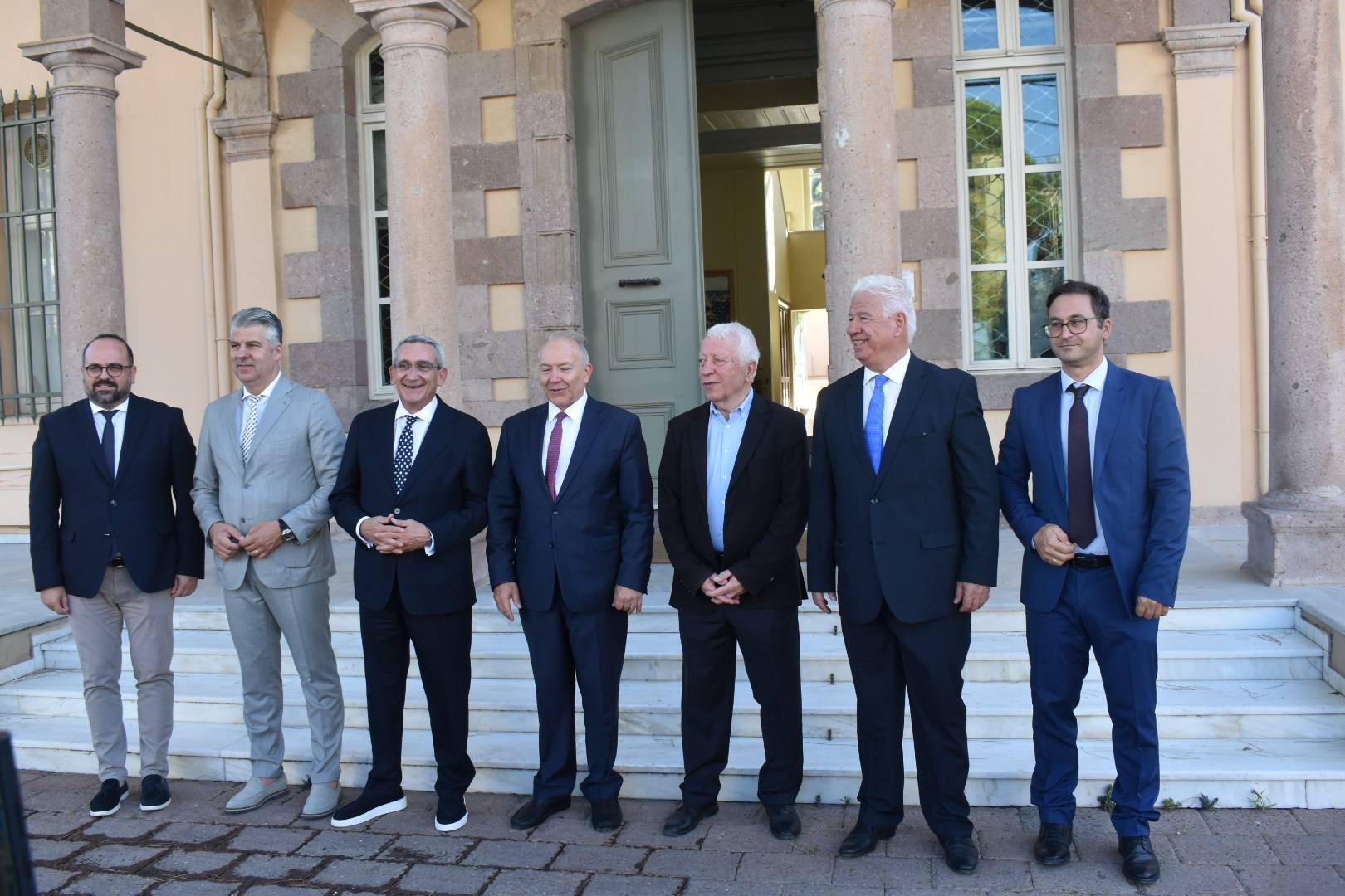 Με φόντο το απέραντο γαλάζιο του Αιγαίου οι Περιφερειάρχες Κωνσταντίνος Μουτζούρης (Βορείου Αιγαίου), Γιώργος Χατζημάρκος (Νοτίου Αιγαίου), και Ιωάννης Τρεπεκλής (Ιονίων Νήσων) δίνουν κοινό παρών στη Λέσβο για την υπογραφή της «Διακήρυξης της Κέρκυρας», παρουσία και του Περιφερειάρχη Ανατολικής Μακεδονίας και Θράκης Χριστόδουλου Τοψίδη.
