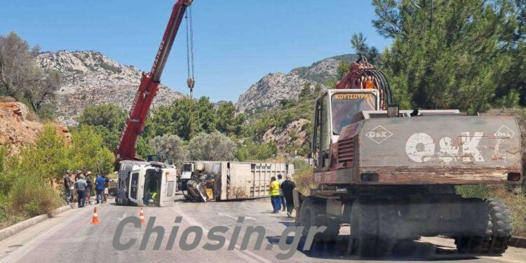 Όχημα του δήμου Χίου, που μεταφέρει απορρίμματα , ντελαπάρισε στις 10,00 το πρωί στην περιοχή του Κοντυλόπου, με αποτέλεσμα να κλείσει ο δρόμος.