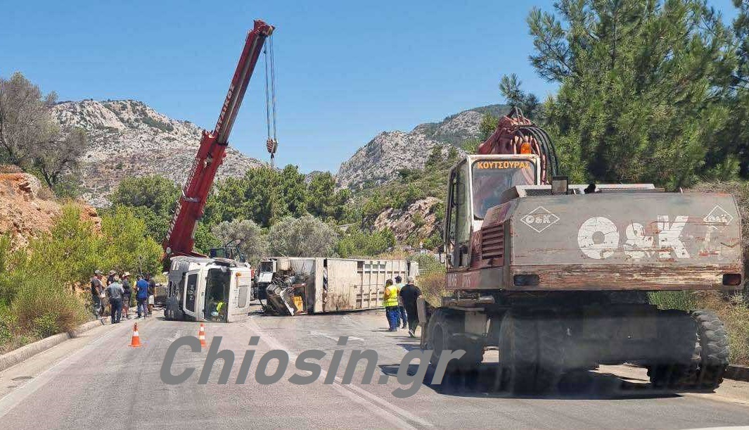 Όχημα του δήμου Χίου, που μεταφέρει απορρίμματα , ντελαπάρισε στις 10,00 το πρωί στην περιοχή του Κοντυλόπου, με αποτέλεσμα να κλείσει ο δρόμος.