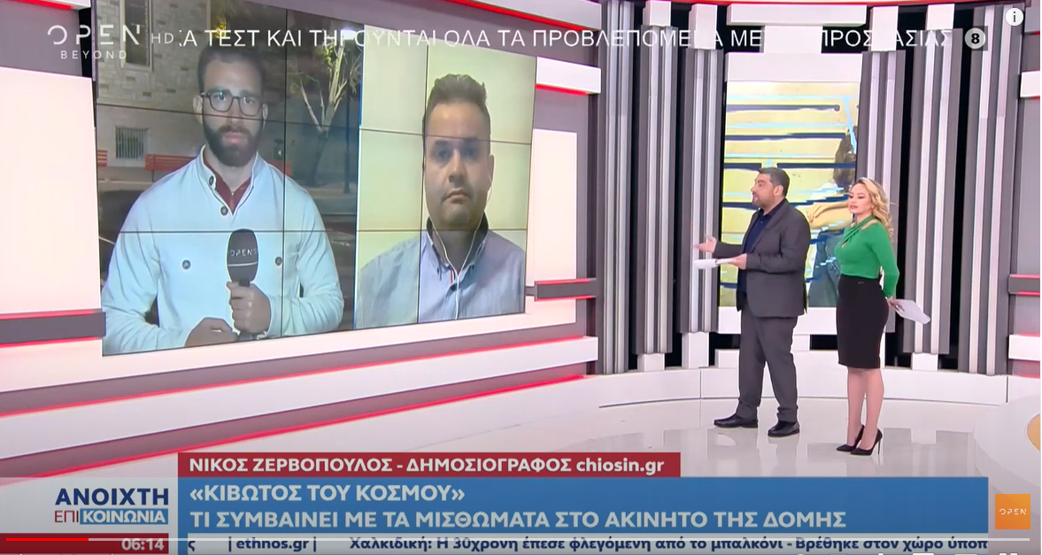 Εκτενές ρεπορτάζ από τον Δημοσιογράφο της Chiosin.gr Νίκο Ζερβόπουλο στην εκπομπή Ανοικτή επικοινωνία του OPEN TV για το ακίνητο της δομής του Αίπους. Σύμφωνα με δήλωση του πρόεδρου της Προμηθευτικής κ. Μάρκου Μεννή το χρέος από τα ενοίκια είναι 132,000 € από το 2016.