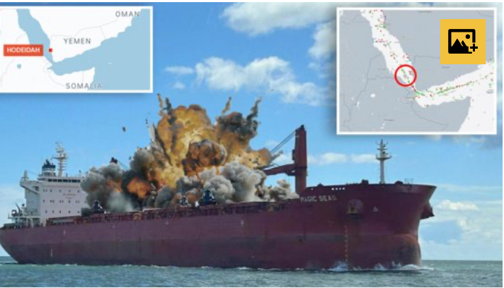 Όπως αναφέρει το AP, «ένα πλοίο που ταξίδευε στην Ερυθρά Θάλασσα φέρεται να τυλίχθηκε στις φλόγες αφού δέχθηκε επίθεση την Κυριακή από ένοπλους άνδρες που πυροβολούσαν και εκτόξευαν χειροβομβίδες με ρουκέτες, ανέφεραν οι Αρχές.
