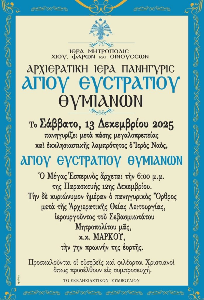 Αρχιερατική πανήγυρις Αγίου Ευστρατίου Θυμιανών