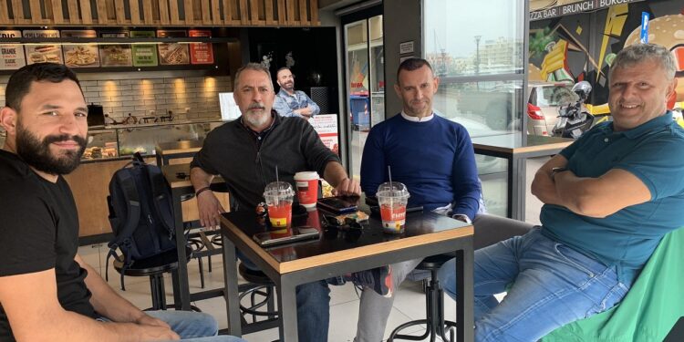 Μετεκλογικές συναντήσεις για τον συνδυασμό Χίος για Όλους. Ο φακός της Chiosin.gr εντόπισε τους εκλεγμένους Παντελή Καμπούρη, Παντελή Λεγάτο, Πρόδρομο Μανωλάκη σε γνωστό στέκι να συνομιλούν. Στην παρέα ήταν και πρώην Αντιδήμαρχος… που δεν θέλησε να φωτογραφηθεί.