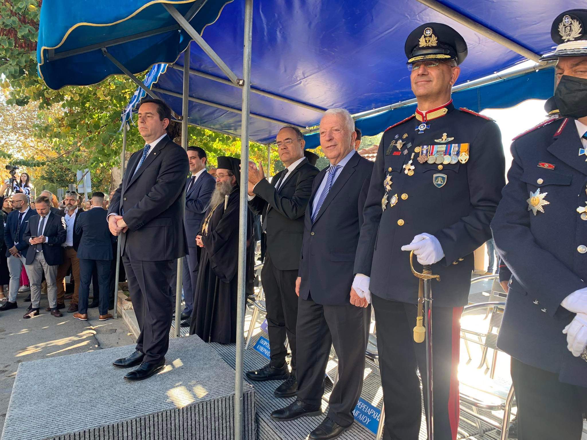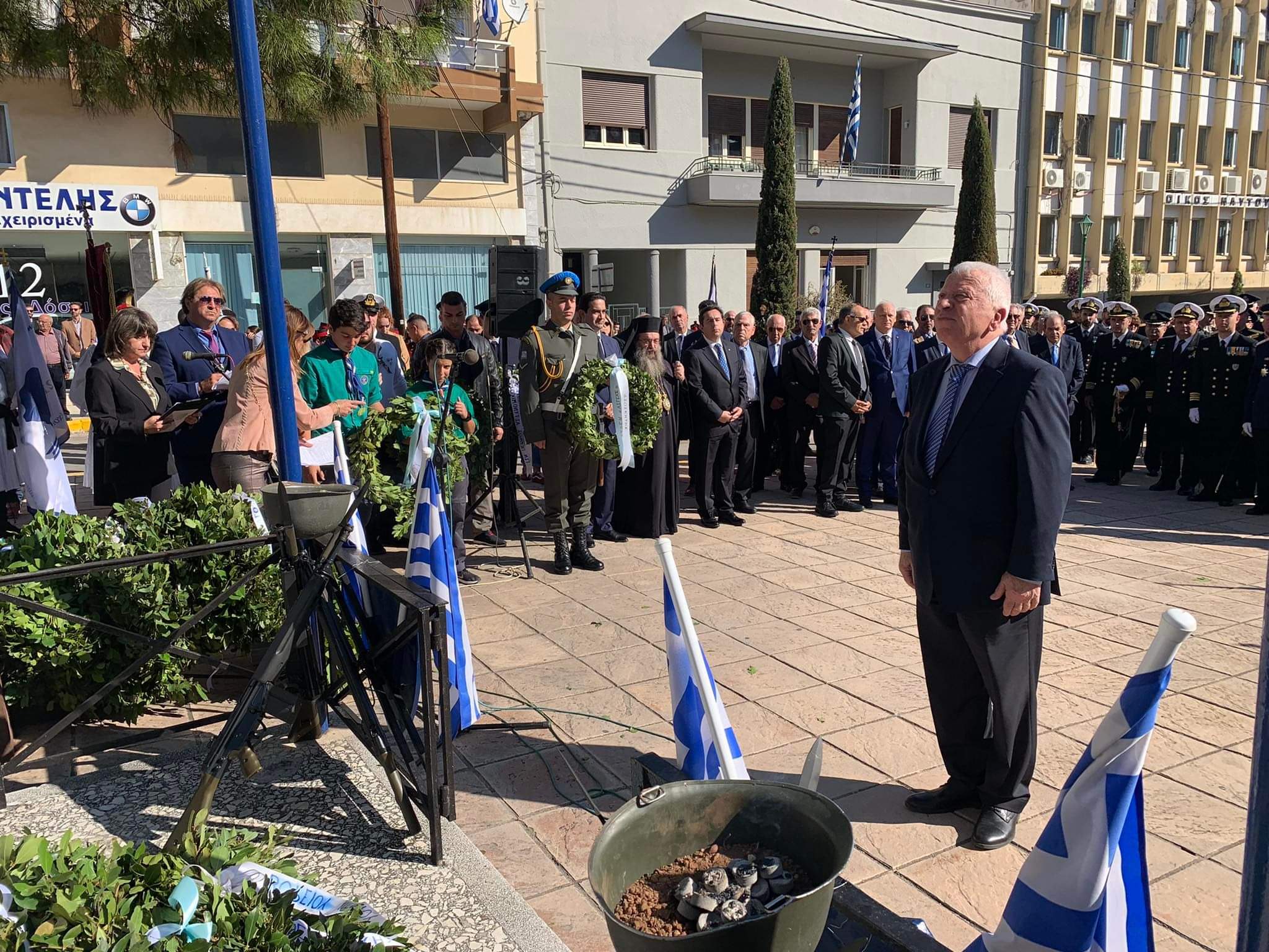 «Η Μυροβόλος Χίος εορτάζει σήμερα την απελευθέρωσή της στις 11 Νοεμβρίου 1912 από τον Ελληνικό Στόλο μετά από  346 χρόνια Οθωμανικής σκλαβιάς. Ο αείμνηστος Ναύαρχος Κουντουριώτης  κατέπλευσε στη Χίο και οι Ελληνικές δυνάμεις  που αποβιβάστηκαν στο Κοντάρι , έδωσαν μάχες για να περάσει η νήσος ξανά στην Ελληνική κυριαρχία.  Η  επανένωσή της με την Ελλάδα γέμισε χαρά και ανακούφιση τις ψυχές των θυμάτων των μεγάλων σφαγών, η Ελληνική ψυχή πέταξε ελεύθερη πάνω από τη νήσο , προσφέροντας σπονδή στη μνήμη τους.  Είμαστε εδώ σήμερα όλοι τιμώντας την Ιστορία μας και την ελευθερία μας. Ενθυμούμενοι και εμπνεόμενοι  από τους αγώνες του παρελθόντος. Αντικρύζοντας  με βλέμμα καθαρό το καθήκον μας, να σταθούμε άξιοι συνεχιστές της κληρονομίας  των προγόνων μας. Ζήτω η  ελεύθερη Ελληνική Χίος. Ζήτω το Βόρειο Αιγαίο με τους αγώνες του. Ζήτω η Ελλάδα.»