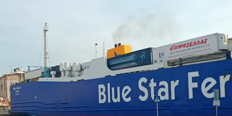 Στη Χίο για πρώτη φορά ήρθε το ro-ro Blue Carrier 1 της Βlue Star μήκους 142 μέτρων την Μεγάλη Παρασκευή το πρωί.