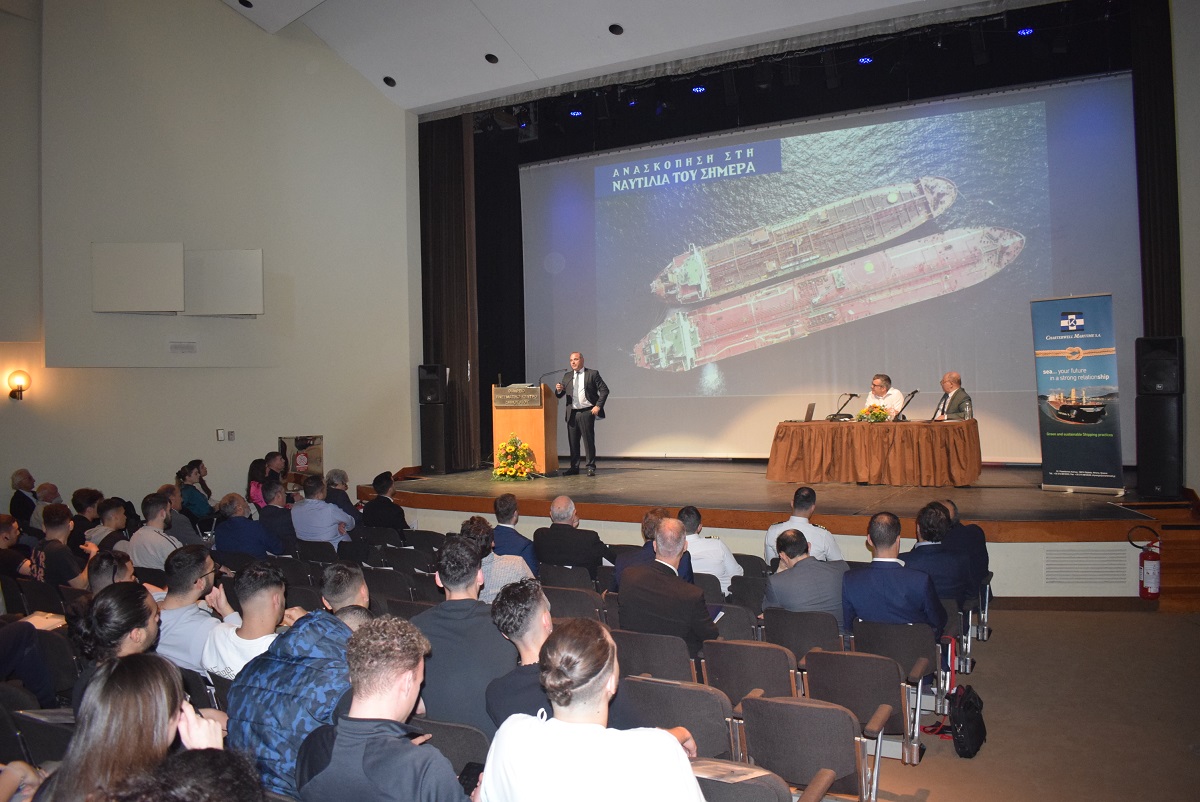 Η ημερίδα έχει τίτλο «Ανασκόπηση στη Ναυτιλία του σήμερα» και την παρακολούθησαν σπουδαστές της ΑΕΝ Μηχανικών Χίου, της ΑΕΝ Πλοιάρχων Οινουσσών και φοιτητές του Τμήματος Ναυτιλίας & Επιχειρηματικών Υπηρεσιών του Πανεπιστημίου Αιγαίου. Χαιρετισμούς απηύθυναν ο Σεβ.Μητροπολίτης Χίου, Ψαρών & Οινουσσών κ.Μάρκος, ο Βουλευτής Χίου, Σταύρος Μιχαηλίδης, ο Δήμαρχος Χίου, Γιάννης Μαλαφής, εκπρόσωποι από τους Δήμους Ψαρών & Οινουσσών και ο Πρόεδρος του Τμήματος Ναυτιλίας και Επιχειρηματικών Υπηρεσιών, Καθηγητής Σεραφείμ Κάπρος.