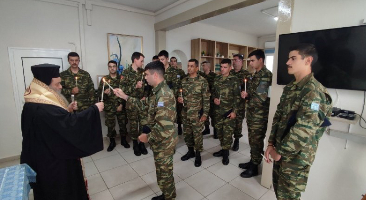 Ο Σεβασμιώτατος και ο Ταξίαρχος ευχήθηκαν στους άνδρες των συνόρων με πνευματικές θρησκευτικές και ένδοξες εθνικές αναφορές.