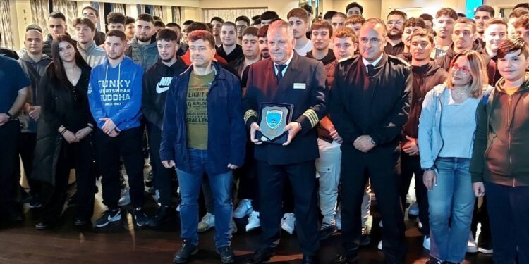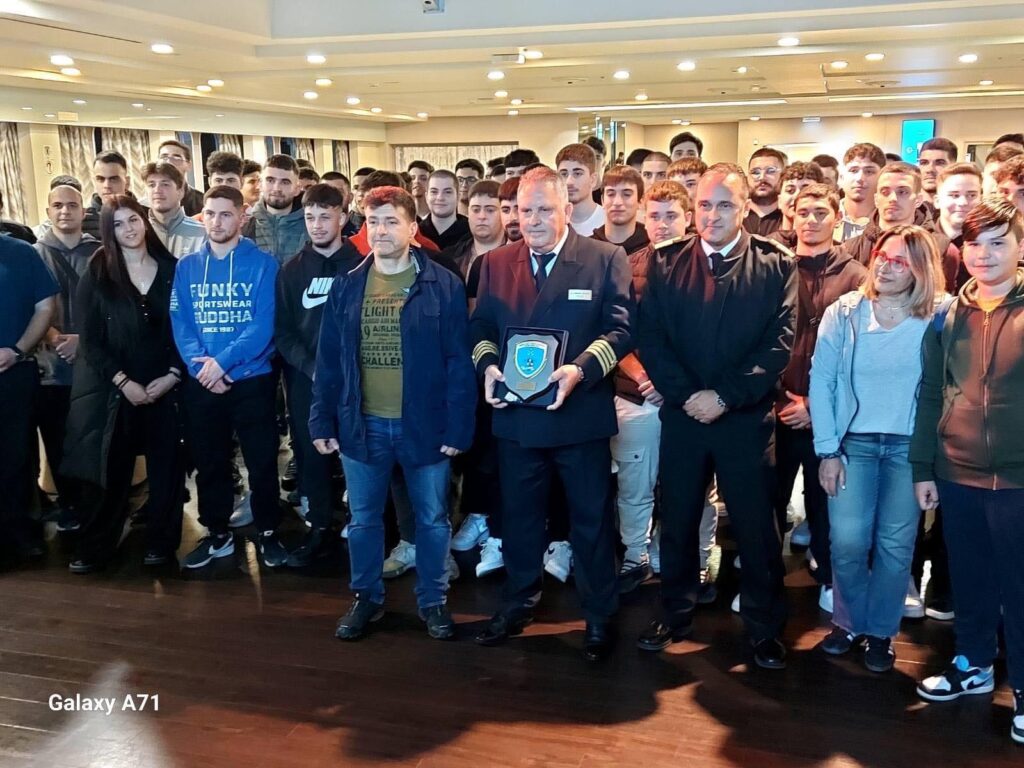 Απονομή θυρεού απο την ΑΕΝ Χίου στον κάπτα Γιώργο Αρβανίτη για την επί σειρά ετών προσφορά του στην Ελληνική Εμπορική Ναυτιλία, ιδίως στον απαιτητικό χώρο της ακτοπλοΐας, λίγο πριν τον απόπλου του Nissos Samos για τον Πειραιά και της εκπαιδευτικής επίσκεψης των πρωτοετών μας στην Αθηνα.