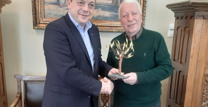 Στο δεύτερο μέρος της συναντήσεως παρευρέθη ο Δήμαρχος Χίου Γιάννης Μαλαφής, ο οποίος τον ενημέρωσε για την εξόρυξη αντιμονίου.