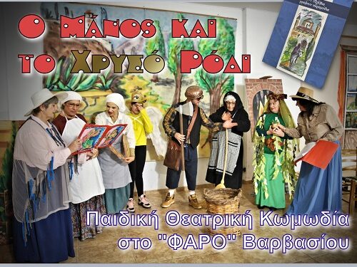 Την Παρασκευή 12 Ιανουαρίου 24 οι Θεατρεργάτες Κοφιναίοι θα παίξουν την παιδική ξεκαρδιστική κωμωδία “Ο Μάνος και το Χρυσό Ρόδι” στο Φάρο Φαρβασίου. Πρόκειται για μια παιδική θεατρική παράσταση για όλες τις ηλικίες. Ώρα έναρξης 6.00 το απόγευμα. Το παραμύθι αυτό γράφτηκε από τον Μπάμπη Κοιλιάρη αρχικά ως θεατρικό αλλά συμπεριλαμβάνεται και στο πρόσφατο βιβλίο παραμυθιών του συγγραφέα “18+1 μολύβια γράφουν παραμύθια” που θα μπορείτε να προμηθευτείτε και από την παράσταση.