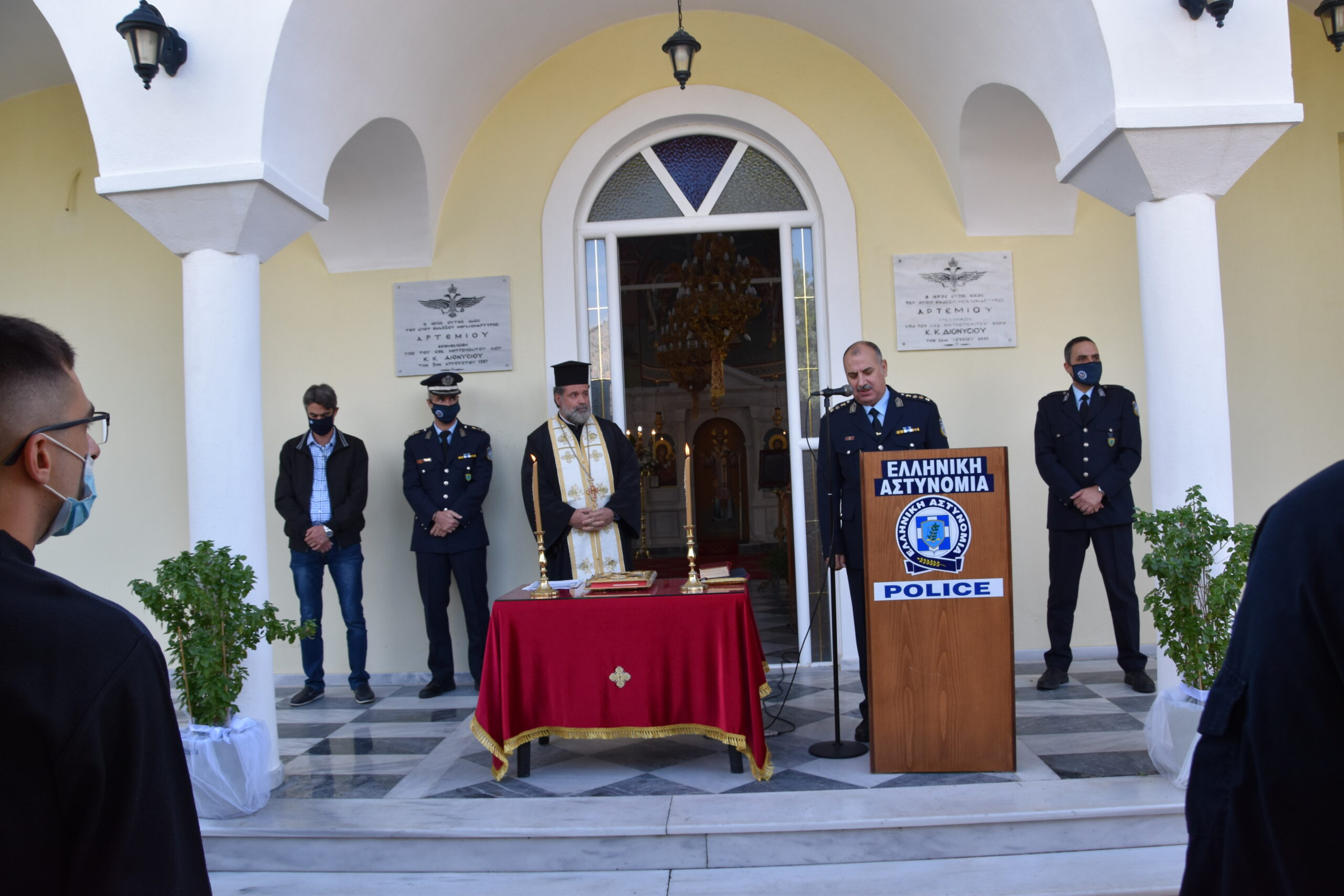 παραβρέθηκαν, ο Αναπληρωτής Διευθυντής της Διεύθυνσης Αστυνομίας Χίου, Αστυνομικός Διευθυντής Γεώργιος Κατσαρός, καθώς και λοιποί Αξιωματικοί.