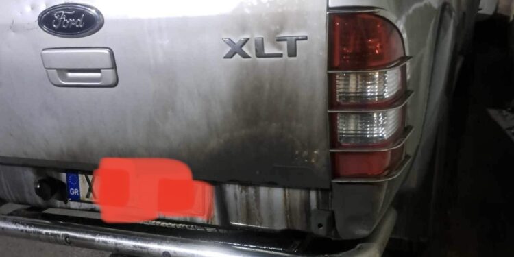 Δυο άτομα πέρασαν με το όχημα τους από το σταθμευμένο αγροτικό και πέταξαν εύφλεκτο υλικό. Σε δευτερόλεπτα το αγροτικό πήρε φωτιά. Στο σημείο έσπευσαν δυνάμεις της Πυροσβεστικής Υπηρεσίας που κατάφερνα και έσβησαν τη φωτιά πριν πάρει μεγάλες διαστάσεις
