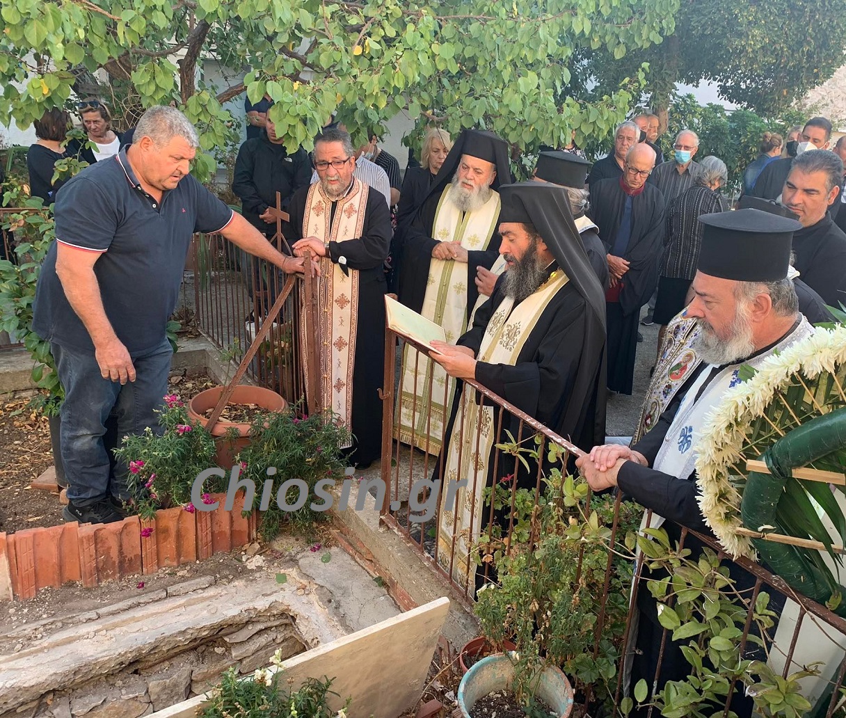 Από τις οκτώ το πρωί της Τρίτης το σεπτό της σκήνωμα είχε τοποθετηθεί στο μέσο του Ιερού Ναού του Αγίου Μηνά για προσκύνηση από τους πιστούς ενώ στεφάνι απέστειλε ο Αρχηγός της Εθνικής Φρουράς και πρώην στρατιωτικός διοικητής Χίου Αντιστράτηγος Δημόκριτος Ζερβάκης.