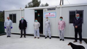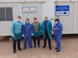 φορέων του Κορωναιού εμπρός απο τα Κ. Υ. Τ. Μόριας Λέσβου, ΒΙΑΛ Χίου και
