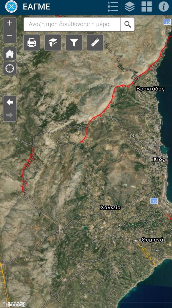 Στον χάρτη του ΕΑΓΜΕ που δείχνει τα ρήγματα στον ελλαδικό χώρο βλέπουμε ότι στην περιοχή που κατασκευάστηκε το φράγμα Κόρης γεφύρι, ένα χιλιόμετρο μακριά από το κέντρο της πόλης Χίου περνάει σεισμογενές ρήγμα και μάλιστα είναι μια περιοχή που έχει δώσει τον πλέον πολύνεκρο σεισμό στον ελλαδικό χώρο, το 1881.