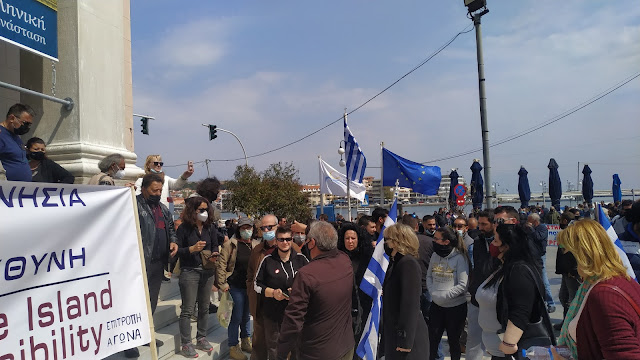 Στην συνέχεια οι συγκεντρωμένοι κατευθύνθηκαν με πορεία προς την Γενική Γραμματεία Αιγαίου, όπου βρίσκονταν η κ. Γιόχανσον και τις επέδωσαν ψήφισμα, στο οποίο έθεταν την αντίρρηση τους για τα σχέδια της Ε.Ε να μετατρέψει τα νησιά σε γκρίζες ζώνες και αποθήκες ψυχών.