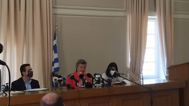 Ακολούθησε Συνέντευξη Τύπου της κ. Γιόχανσον, η οποία τόνισε την αναγκαιότητα να γίνουν οι νέες δομές. Μάλιστα όπως σημείωσε, πέταξε με το ελικόπτερο πάνω από την θέση που έχει επιλεγεί για να γίνει η νέα δομή στην Λέσβο, την θέση Βαστριά, ενώ επισκέφτηκε και την προσωρινή δομή στο Μαυροβούνι.