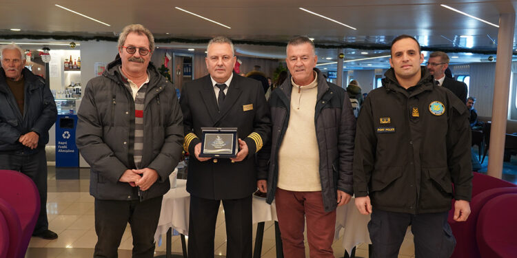 Το λιμεναρχείο Χίου και το λιμενικό ταμείο Χίου παρέδωσαν τιμητική πλακέτα στο πλοίο Νήσος Σάμος, το πρώτο πλοίο που προσέγγισε το λιμάνι της Χίου το 2020. Την απονομή έκανε ο υπολιμενάρχης Χίου Δημήτρης Κλουμάσης, στον Χιώτη καπετάνιο Γεώργιο Αρβανίτη. Να θυμίσουμε ότι η άφιξη του Νήσος Σάμος στη Χίο έγινε τα ξημερώματα της πρωτοχρονιάς στις 4:10.