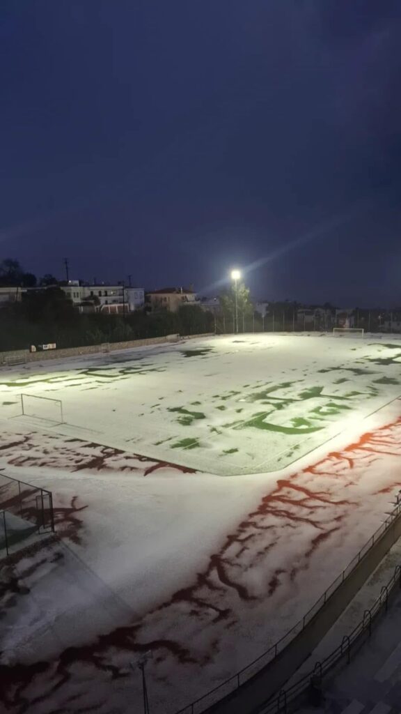Εντωμεταξύ η ομάδα του Λαίλαπα προπονήθηκε στο Φαφαλείο στάδιο με φόντο το χαλάζι…