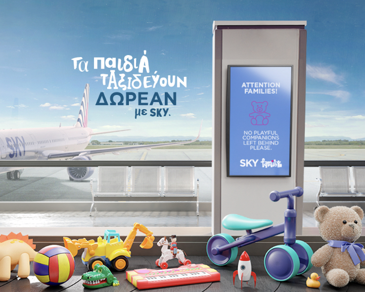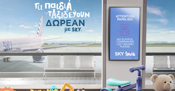 Η SKY expess προσφέρει μια μοναδική προσφορά για όλες τις οικογένειες: Όλα παιδιά, ηλικίας από 2 έως 12 ετών, ταξιδεύουν ΔΩΡΕΑΝ*.