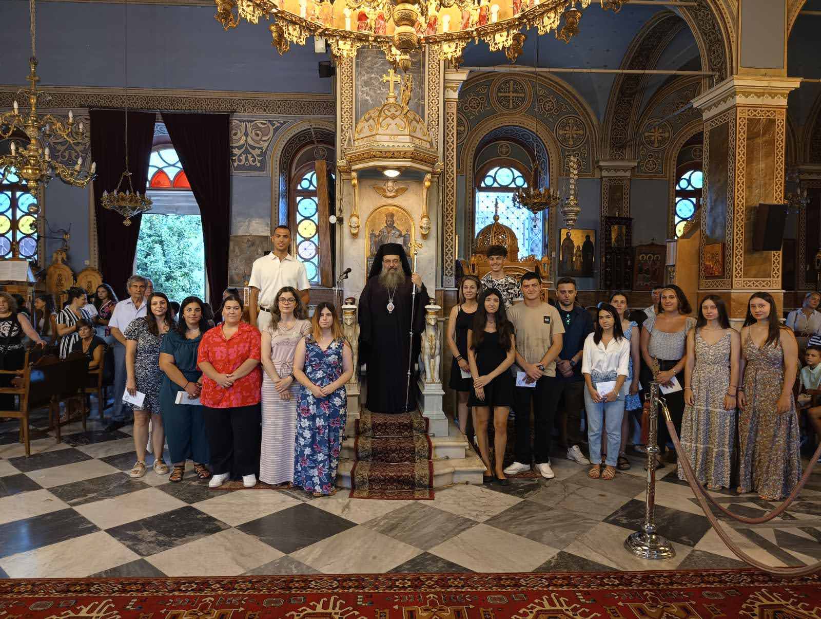 Ἐν συνεχείᾳ ἐκάλεσε ἑκατοντάδες μαθητές καί μαθήτριες τῶν Κατηχητικῶν Σχολείων τῆς Ἱερᾶς Μητροπόλεως, οἱ ὁποῖοι ἀρίστευσαν στά σχολικά μαθήματα τοῦ σχολικοῦ ἔτους 2022-2023 καί τούς ἐπέδωσε ΕΠΑΙΝΟΥΣ ΑΡΙΣΤΕΙΑΣ μαζί μέ τίς πατρικές  του  εὐχές.