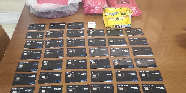 Ειδικότερα, κατόπιν αξιοποίησης πληροφοριών, εντοπίστηκε ο 24χρονος στη χερσαία ζώνη λιμένα επί της λεωφόρου Αιγαίου, να έχει στην κατοχή του εντός χάρτινου κυτίου, τρεις (03) πλαστικές συσκευασίες με ποσότητα καπνού ναργιλέ, συνολικού μεικτού βάρους τριών (03) κιλών, καθώς και δύο (02) συσκευασίες καπνού των πενήντα γραμμαρίων (50 gr.) έκαστη χωρίς να φέρουν την προβλεπόμενη ένσημη ταινία ειδικού φόρου κατανάλωσης, ενώ εντός συσκευασίας καπνού -ναργιλέ βρέθηκαν επιμελώς κρυμμένες πενήντα δύο τεμάχια (52 τμχ) κάρτες SIM κινητού τηλεφώνου χωρίς να συνοδεύεται από νομιμοποιητικά έγγραφα -παραστατικά.